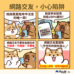 為提升全民對交友服務之正確消費觀念,內政部製作圖卡7張及影片2部,歡迎民眾點閱觀看!