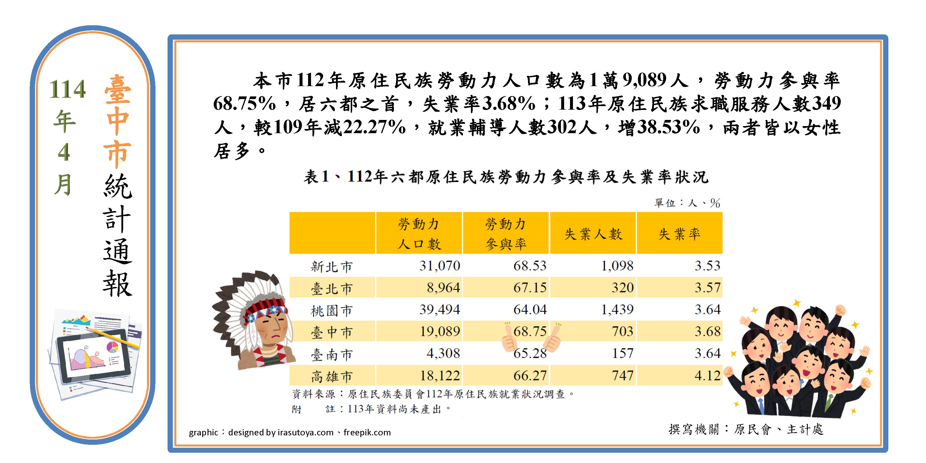 114年4月臺中市統計通報「原住民族就業服務」發布囉!