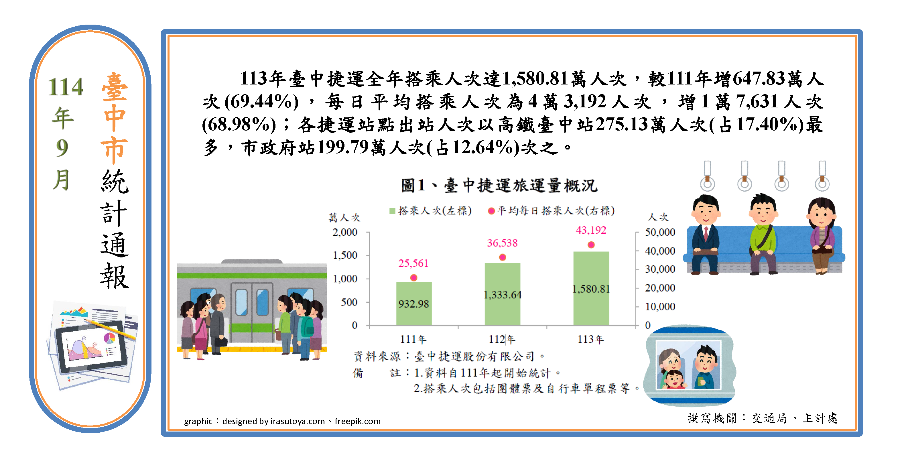 114年9月臺中市統計通報「臺中捷運營運情形」發布囉!