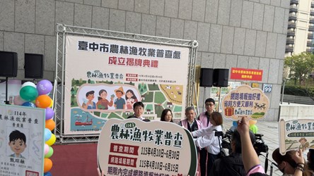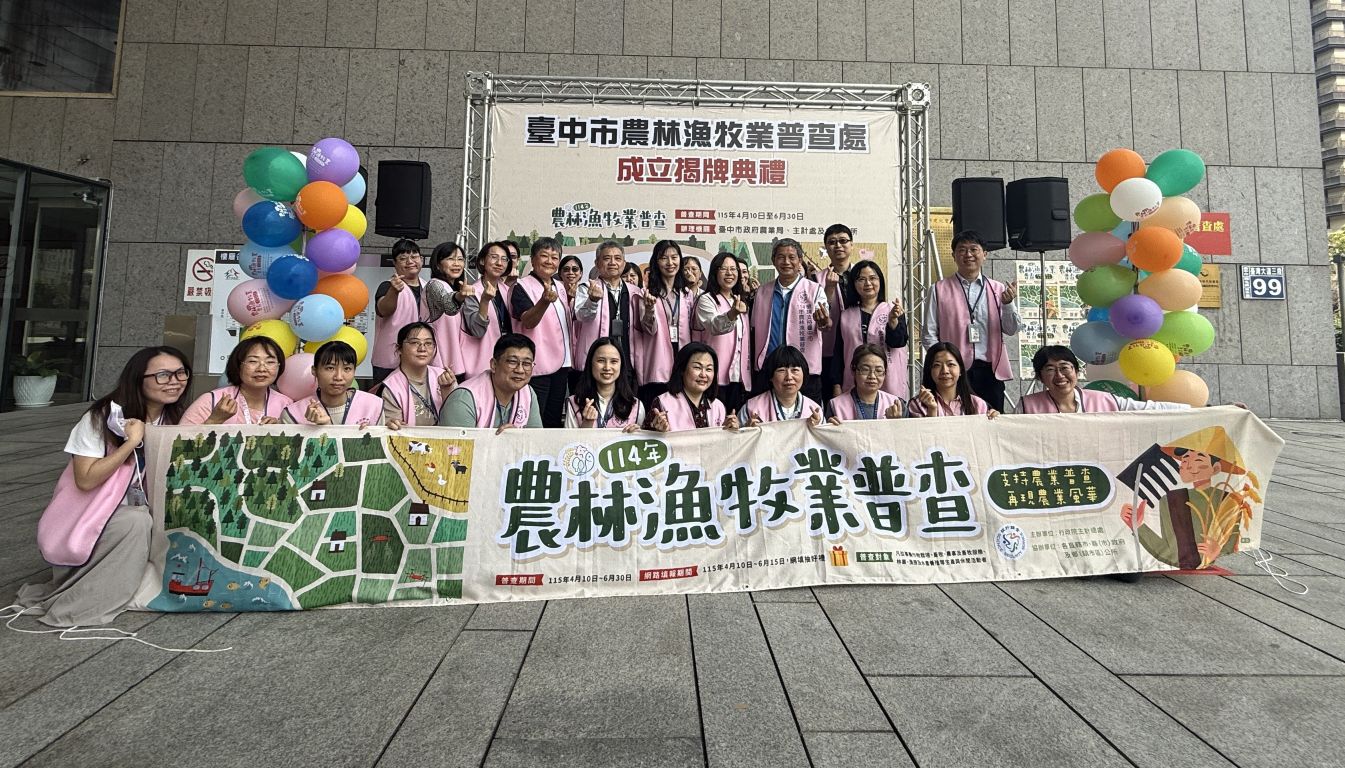 臺中市農林漁牧業普查處成立後,全市29個區公所也將於3月16日掛牌成立「普查所」,由各區區長擔任主任。市府期許全體普查伙伴發揮團隊精神,透過普查傾聽基層農民聲音,將獲得的普查數據轉化為更精準的施政依據,共同打造臺中成為兼顧農業、智慧、永續的宜居城市。