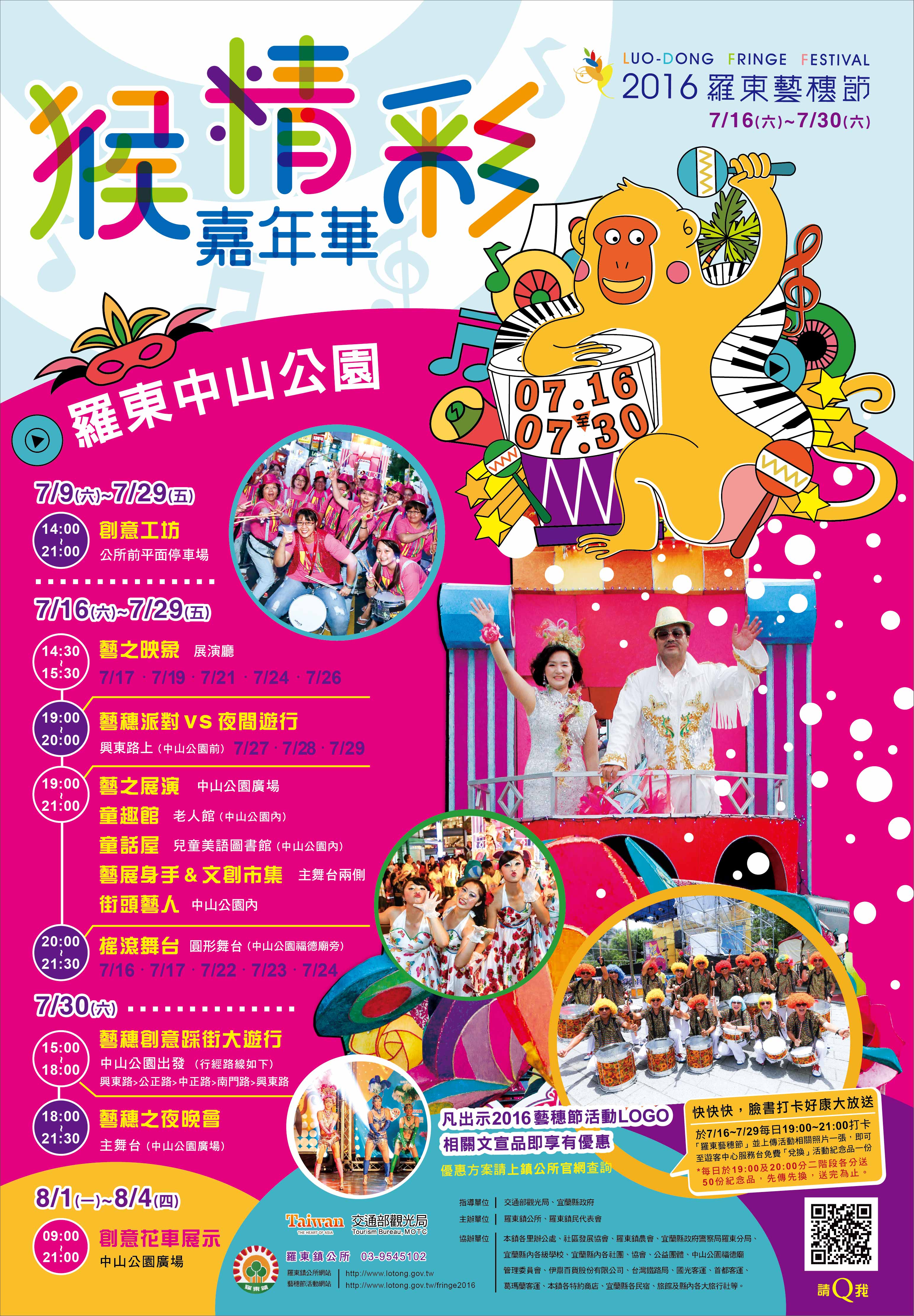 宜蘭縣羅東鎮公所「2016羅東藝穗節」活動,本活動期間自今(105)年7月16日(六)至7月30日(六),活動地點於本鎮中山公園及公所周邊,歡迎蒞臨指導。