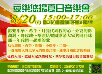 【轉知】臺中市立圖書館南屯分館舉辦「愛樂悠揚夏日音樂會」
