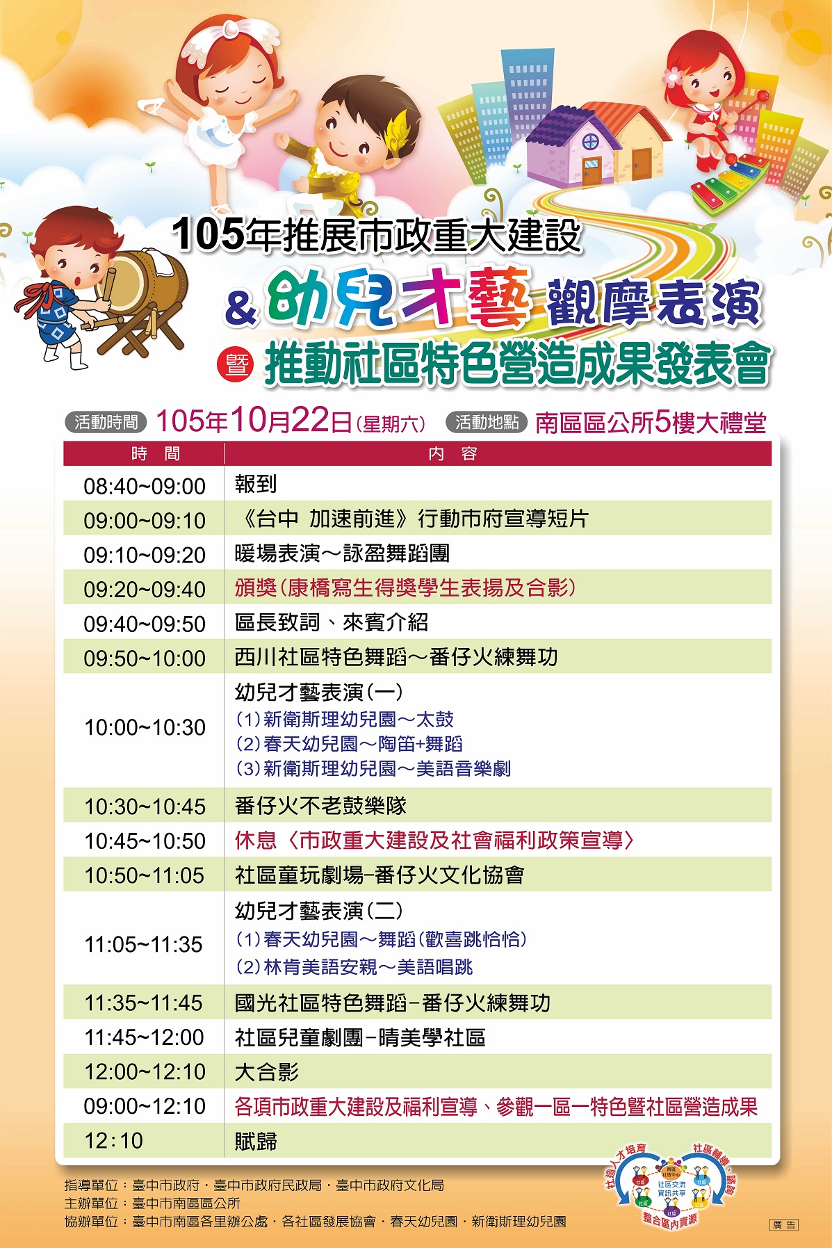 臺中市南區區公所辦理105年「推展市政重大建設&幼兒才藝觀摩表演」暨「推動社區特色營造成果發表會」活動