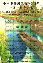 臺中市神岡區公所訂於105年10月28日(星期五)假公所二樓會議室辦理105年度一區一特色計畫「神岡神話(二)—水圳探源巡禮」成果展