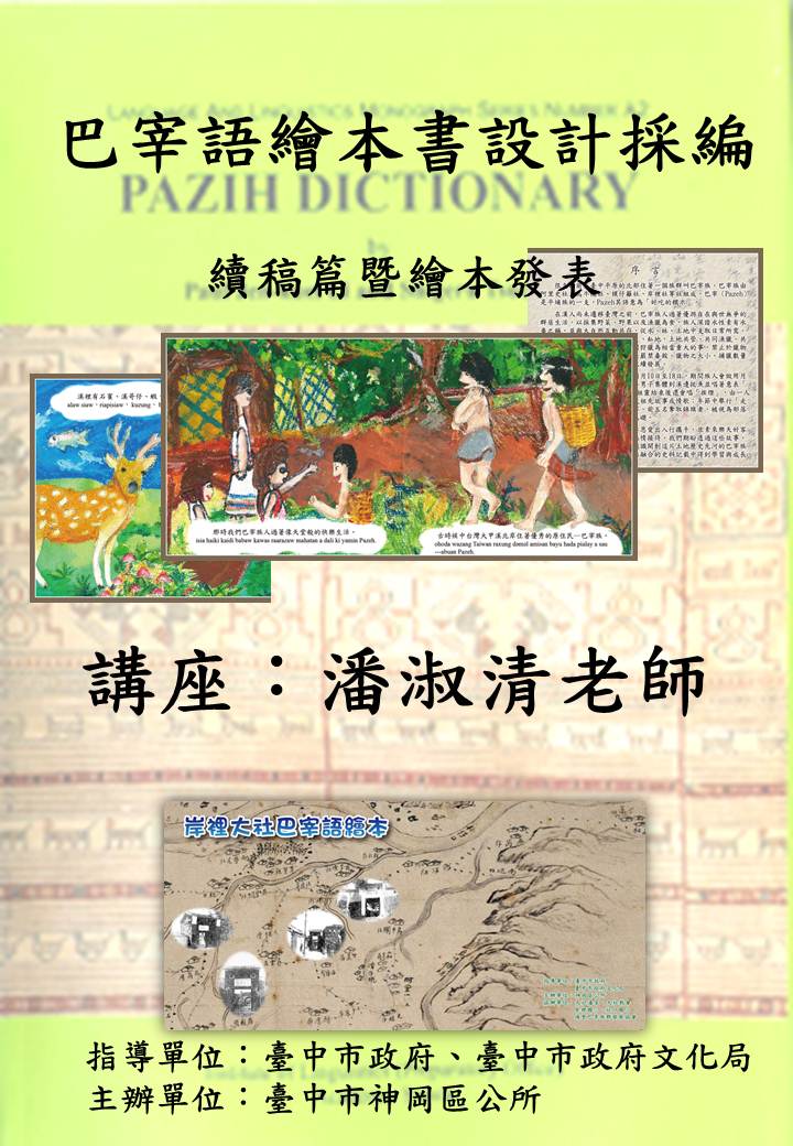 活動內容有:巴宰語繪本書發表、文創品設計檢討暨成果發表、巴宰歌謠(賞花歌)表演、浮圳鐵馬旅遊規劃路程、精采課程片段播放等,時間請詳閱附件海報。
