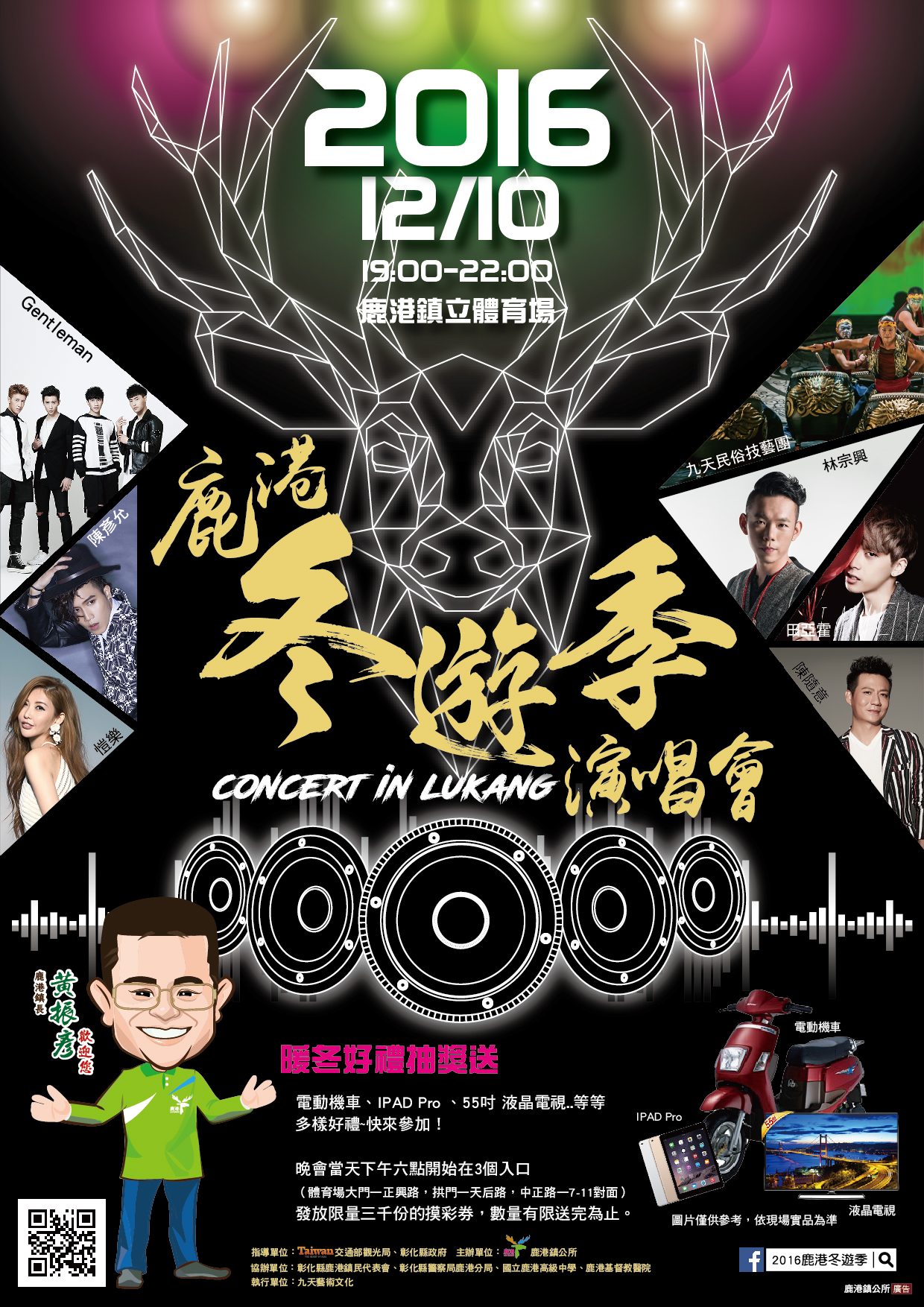 彰化縣鹿港鎮公所辦理「2016鹿港冬遊季演唱會」宣傳海報電子檔1份,請踴躍參加!