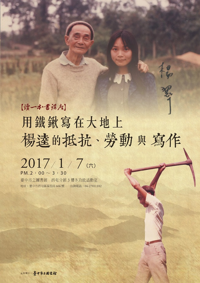 西屯分館邀請歷史學家楊翠分享「用鐵鍬寫在大地上—楊逵的抵抗、勞動與寫作」,帶領讀者從楊逵的精神、經歷與作品重見臺灣的百年史。