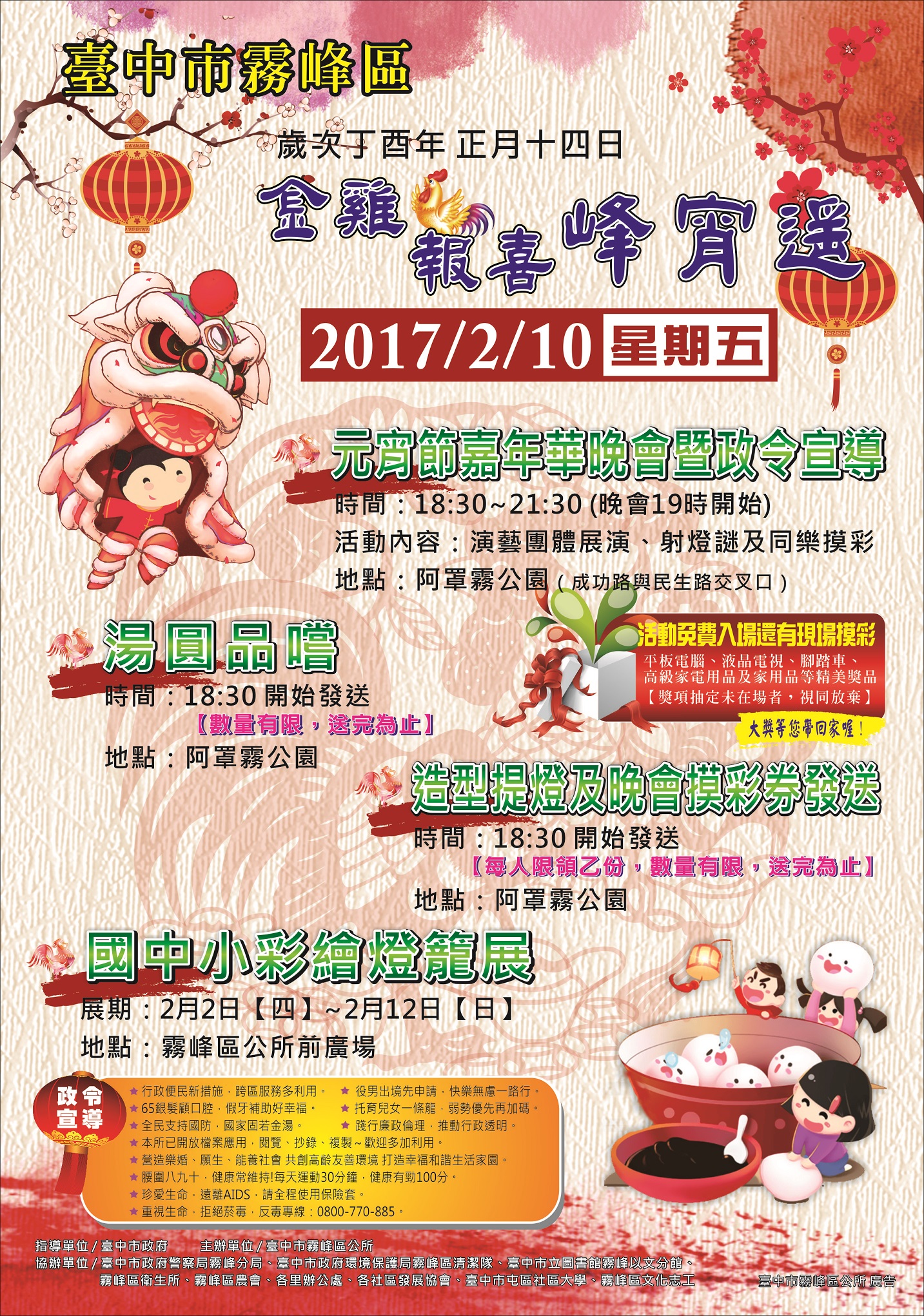 臺中市霧峰區各界慶祝106年元宵節嘉年華系列活動,邀您一同共襄盛舉