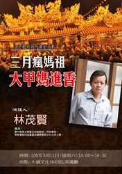臺中市政府文化局大墩文化中心邀請林茂賢教授「三月瘋媽祖-大甲媽進香」講座