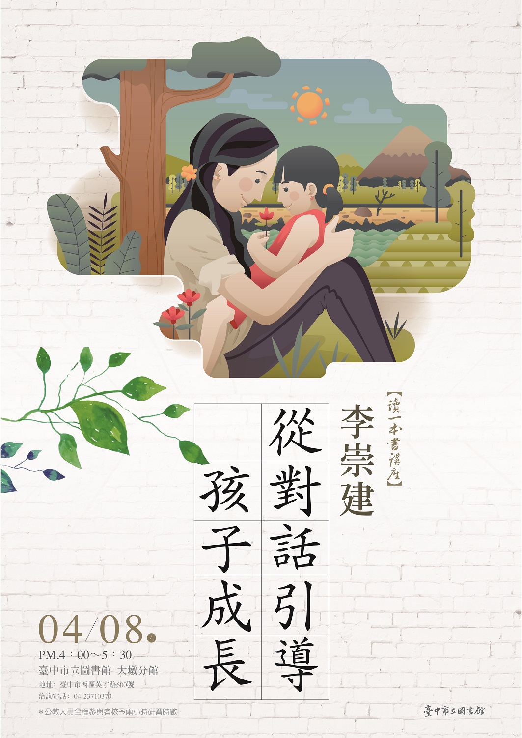 臺中市立圖書館大墩分館辦理「讀一本書講座」活動,敬請踴躍參加。