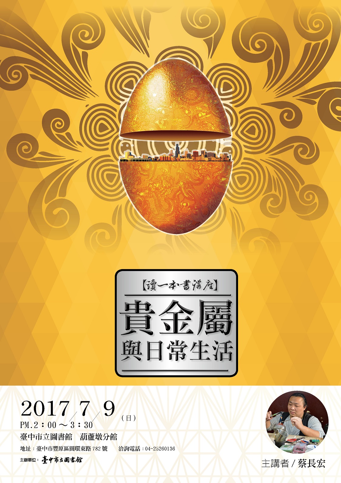 一、第一場講座邀請工藝家蔡長宏分享「貴金屬與日常生活」,介紹貴金屬的種類、迷思、製作過程以及在生活中的應用,從理論到實踐一步步激起民眾對生活工藝的興趣。