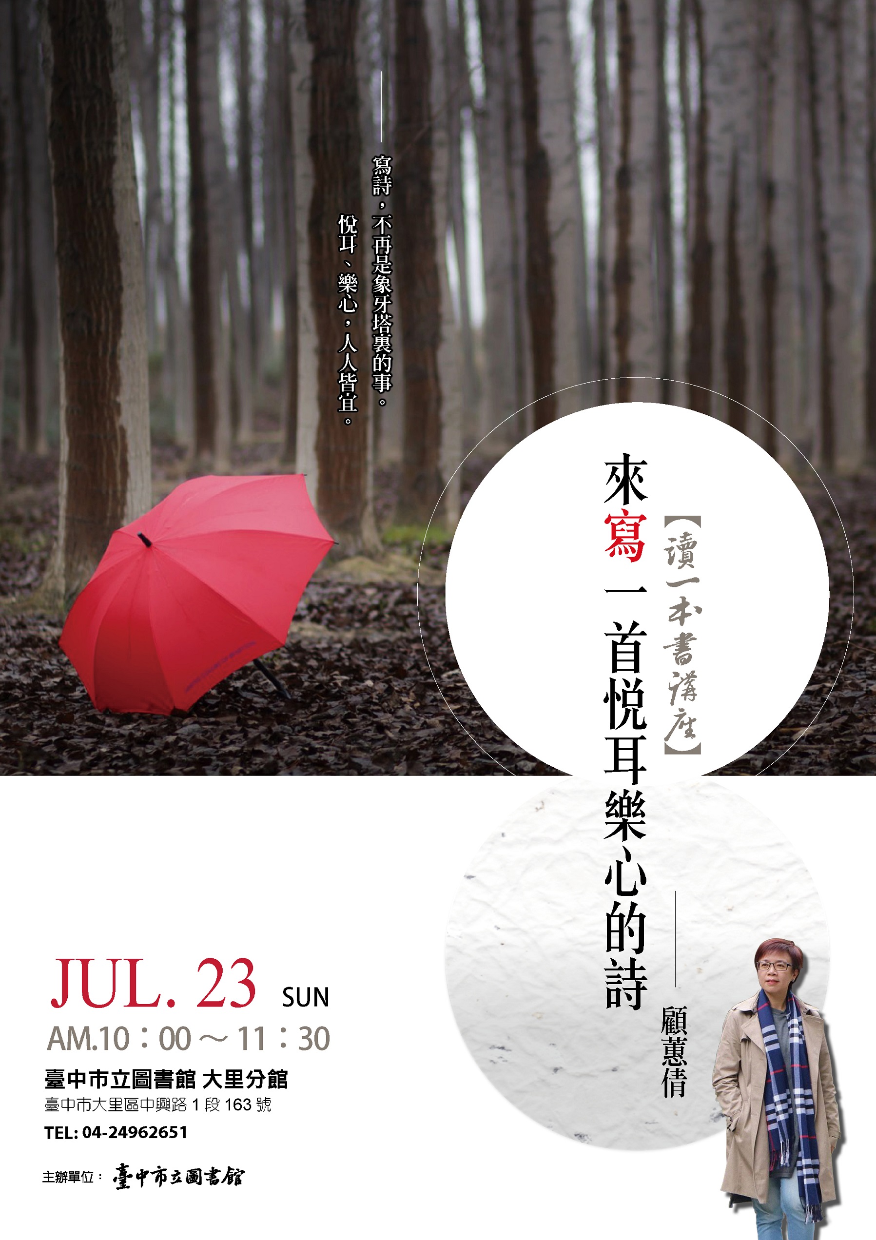 二、第二場講座邀請詩人顧蕙倩分享「來寫一首悅耳樂心的詩」,帶領民眾提筆創作,讓寫詩不再是象牙塔裏的事。