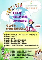 為協助新住民安心騎車上路,避免因語言上的溝通劣勢,致在考機車駕駛執照時造成諸多不便,本所特開辦新住民機車考照輔導班,協助考取機車駕駛執照,提升其生活便利性。