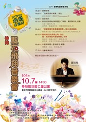 2017臺中市逍遙音樂町─馭花飛翔音樂會,本(106)年10月7日下午2時50分假神岡區圳前仁愛公園廣場舉辦,邀請第27屆金曲獎最佳作曲人獎,也是逆光飛翔主角的臺中人─「黃裕翔」到場演出,還有神岡國小口琴隊、太鼓隊、舞蹈社、「快樂音樂家樂團」、「鴻輝樂團」等優秀演藝團隊演出動人樂曲;此外,本區「哈薩客薩克斯風重奏樂團』將演出改編自呂泉生教授精采音樂『飛快車小姐』等樂曲,邀請您前來聆賞今秋最高水準的音樂盛宴! 為迎接2018臺中世界花卉博覽會,現場農業局將贈送桂花樹苗600株供綠美化環境,每人1株先到先贈,贈完即止;另可以9~10月份發票至本所農建課攤位兌換農特產品、國稅局攤位兌換宣導品等,數量有限兌完即止,歡迎市民踴躍參加。 聯絡人:王銘釧 聯絡電話:04-25620841#131