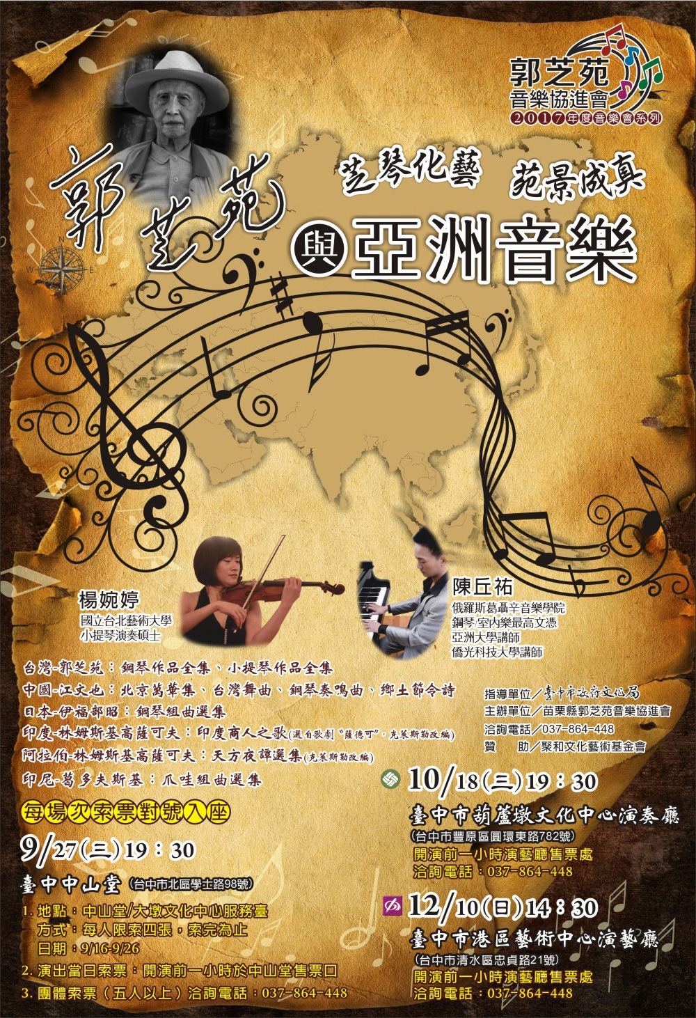 郭芝苑音樂協進會《芝琴化藝,苑景成真-郭芝苑與亞洲音樂》演奏會於10月18日葫蘆墩文化中心舉行,再次讓臺中各地民眾感受、認識郭芝苑大師的音樂靈魂與思想!